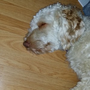 Sleepy boy after playing a bunch this weekend. #dogsofinstagram #labradoodle