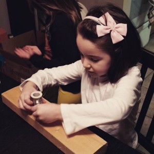 Whistler is helping out in the model shop tonight, wrapping wire for trees. She also learned to use a drill to make the mold. #maker January 26, 2015 trevor